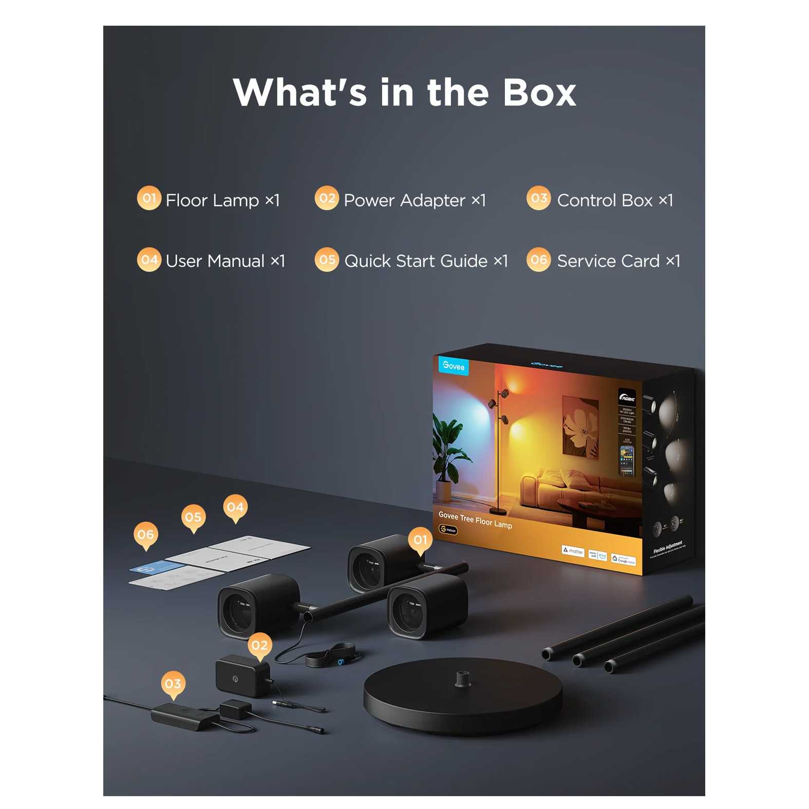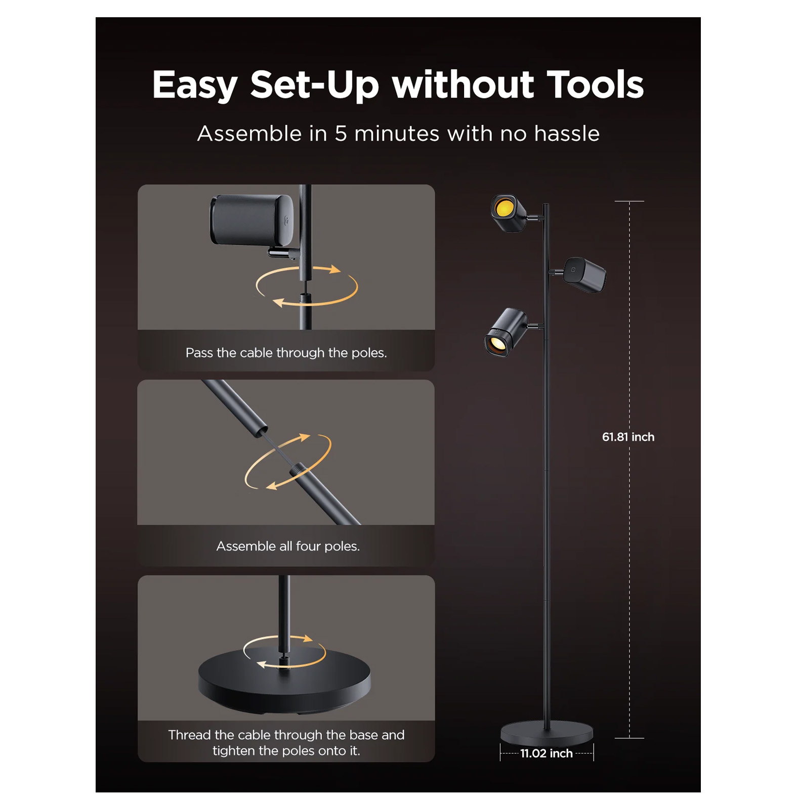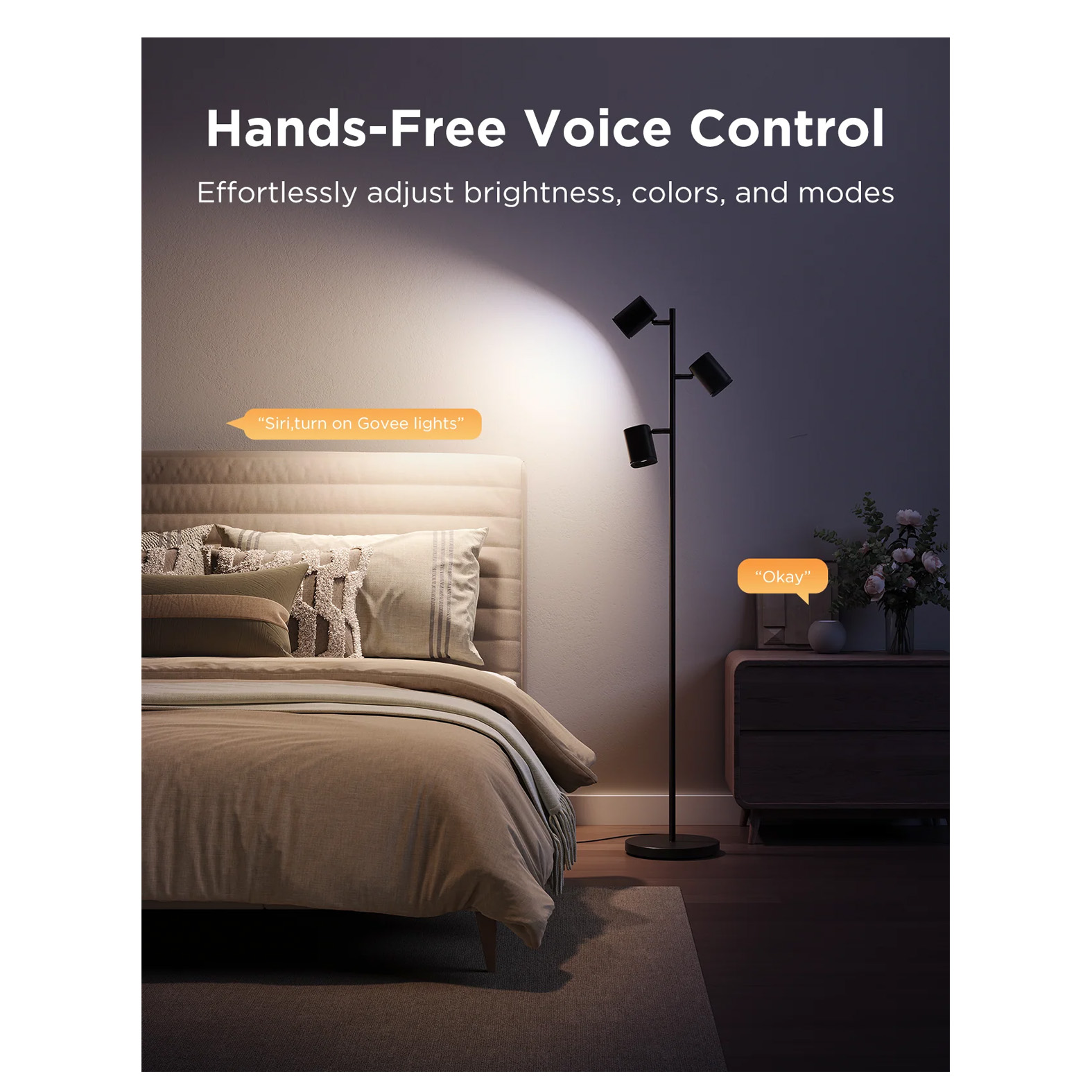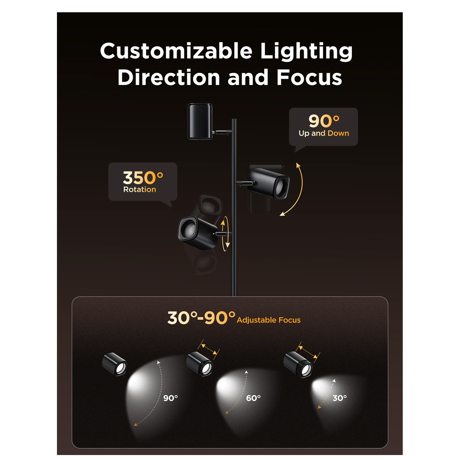 این چراغ زمینی Govee دارای ۳ لامپ قابل تنظیم مستقل است. این چراغ زمینی با بازوهای چرخان ۳۵۰ درجه (افقی) و ۹۰ درجه (عمودی) طراحی شده است. این چراغ زمینی درختی، فوکوس ۳۰ تا ۹۰ درجه را برای نورپردازی دقیق یا دیوارپوش ارائه میدهد.