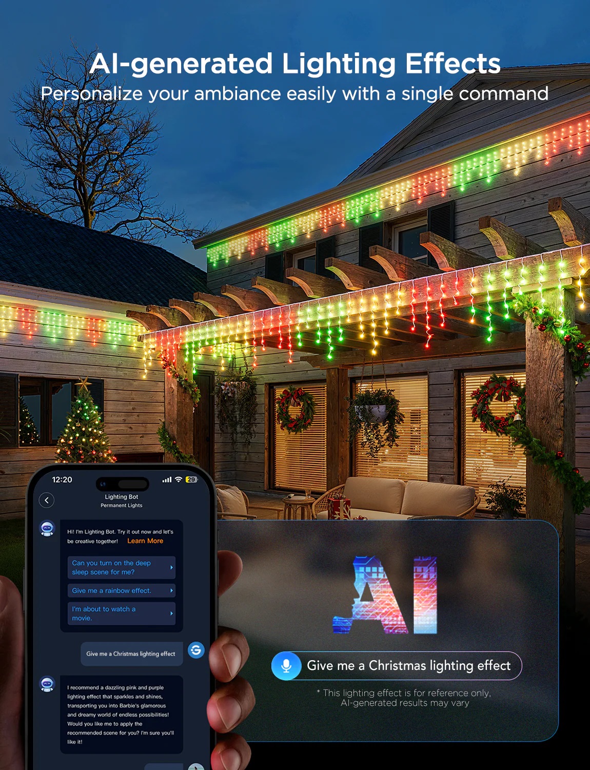 از هوش مصنوعی برای تولید جلوههای نوری برای این چراغهای قندیل LED از طریق پیامهای متنی، صوتی و تصویری استفاده کنید.