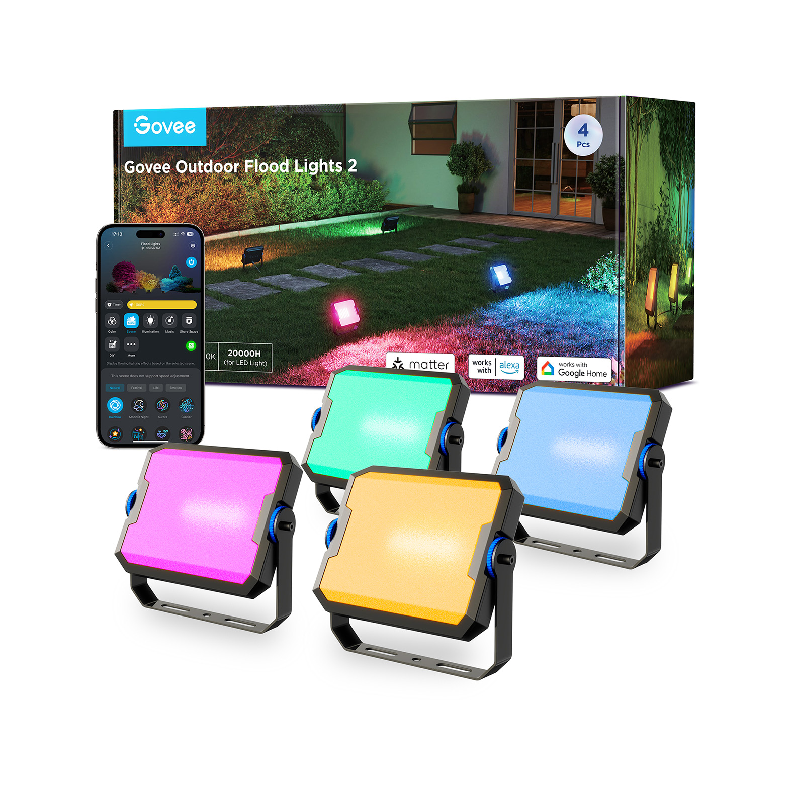 چراغهای سیل LED فضای باز Govee 2 دارای روشنایی ارتقا یافته و رنگهای متعدد هستند تا فعالیتهای فضای باز شما را به یک تجربه جذاب تبدیل کنند. این چراغها میتوانند مناطق وسیعی را با قابلیت اطمینان بالا روشن کنند.