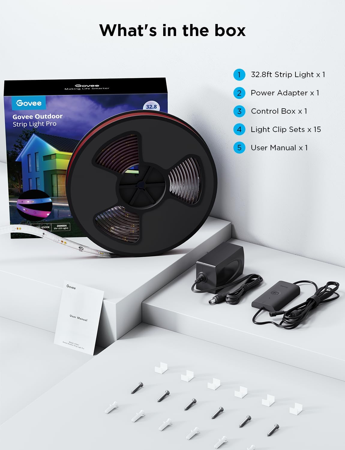 چراغهای LED فضای باز Govee از کنترل مستقل (IC) برای نشان دادن چندین رنگ به طور همزمان در یک نور نواری شکل استفاده میکنند. انتخاب رنگ نامحدود و حالت های صحنه جشن را برای دکوراسیون مناسبت های مختلف تجربه کنید. (نه قابل برش و نه قابل اضافه شدن)