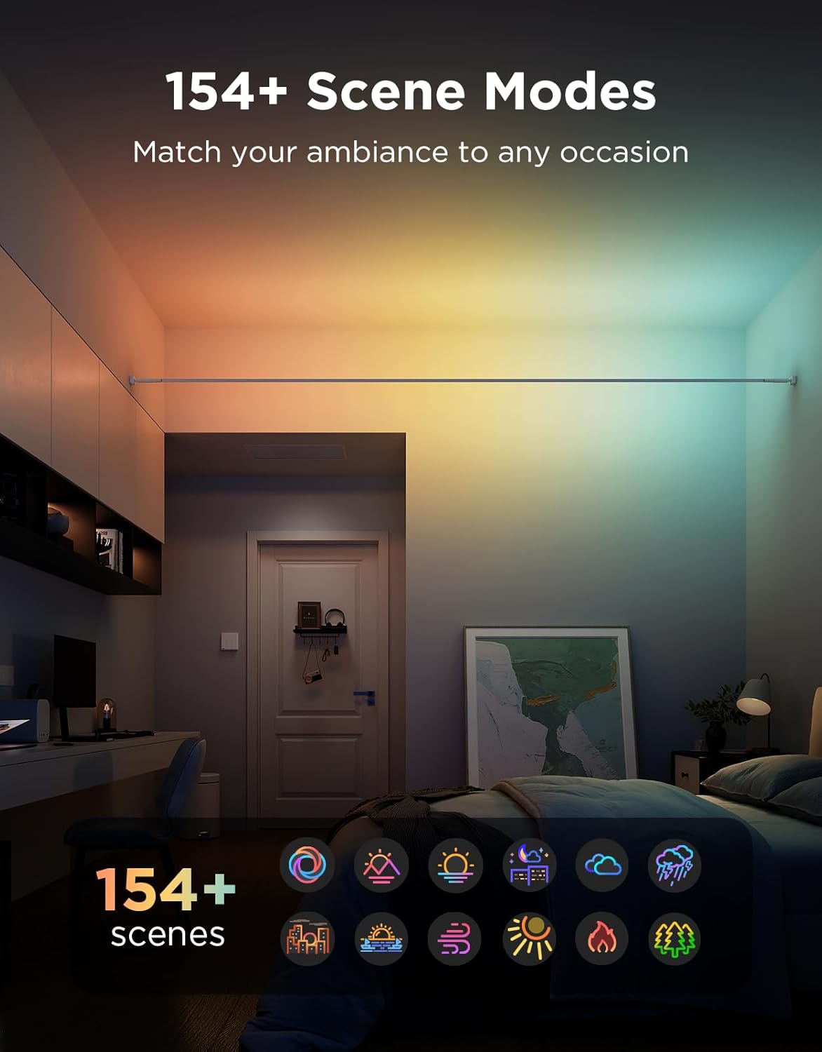 با پشتیبانی از فناوریهای هوشمند مانند Matter، کنترل صوتی با Alexa و Google Assistant، و امکان تنظیم رنگهای کاملاً سفارشی از طریق اپلیکیشن Govee، این محصول نهتنها یک نوار نور ساده، بلکه یک ابزار قدرتمند برای طراحی نورپردازی هنری و هماهنگ با فضا به شمار میرود.